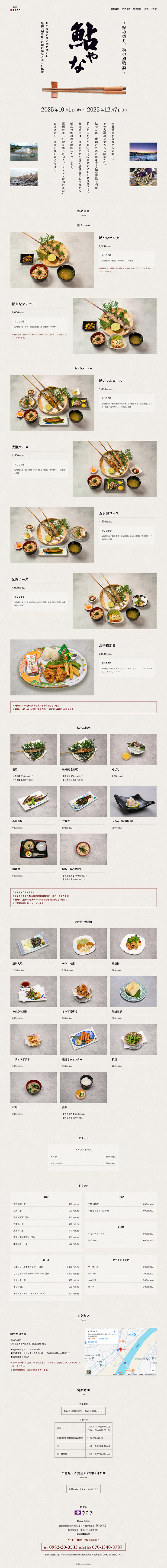 『鮎料理の魅力を、シンプルかつわかりやすく伝える』をテーマに制作した「鮎やな ささき」様の特設ランディングページを制作いたしました。