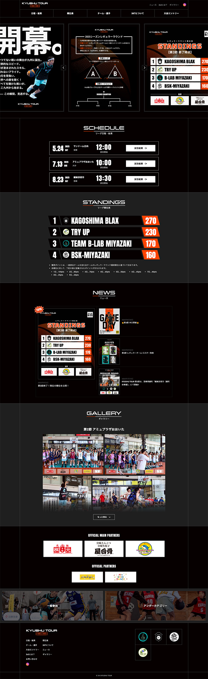 『九州を舞台にスポーツの熱狂を発信する』をテーマに、3人制バスケットボール大会「3x3 KYUSHU TOUR」の公式サイトを制作いたしました。